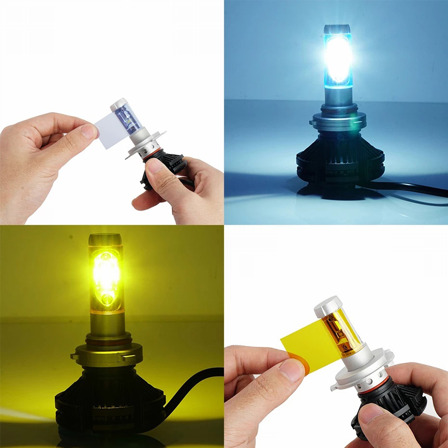 Set 2 Becuri auto LED H4, X3, 50W, 2 faze, filtre culoare
