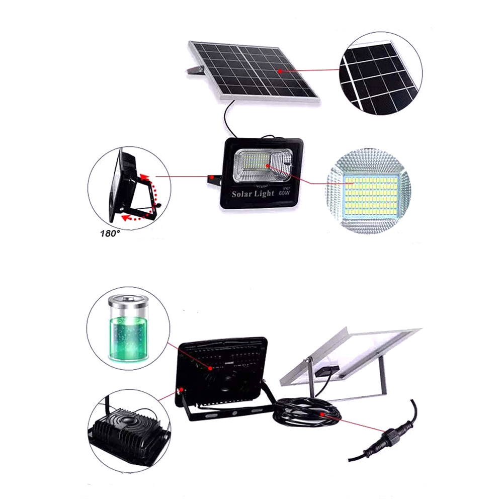 Proiector LED cu panou solar, telecomanda, 60W