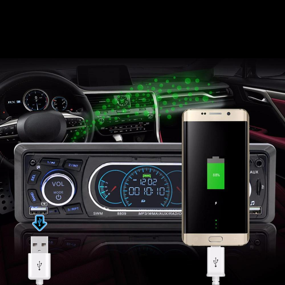 Radio MP3 Player SWM8809 dispune de conectivitate Bluetooth, slot Dual USB/TF/AUX si radio FM pentru a-ti asigura divertismentul la drum, mentinand in acelasi timp siguranta la volan.