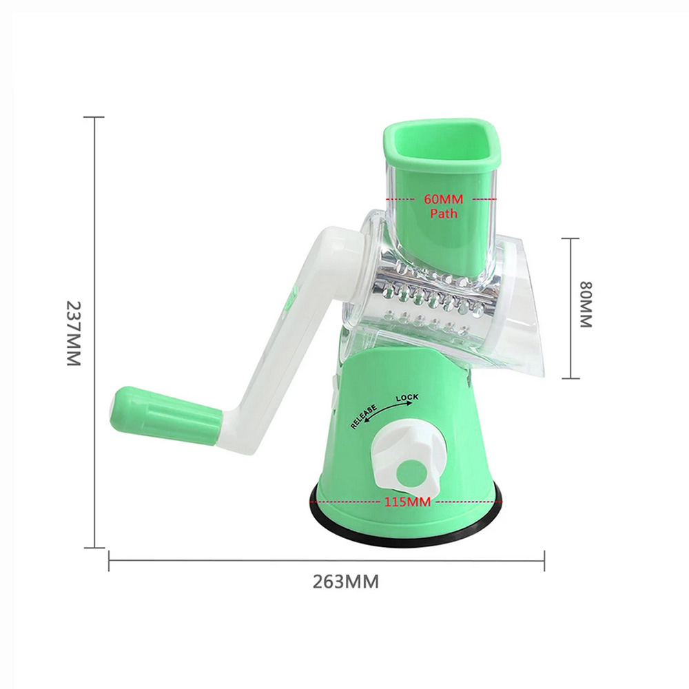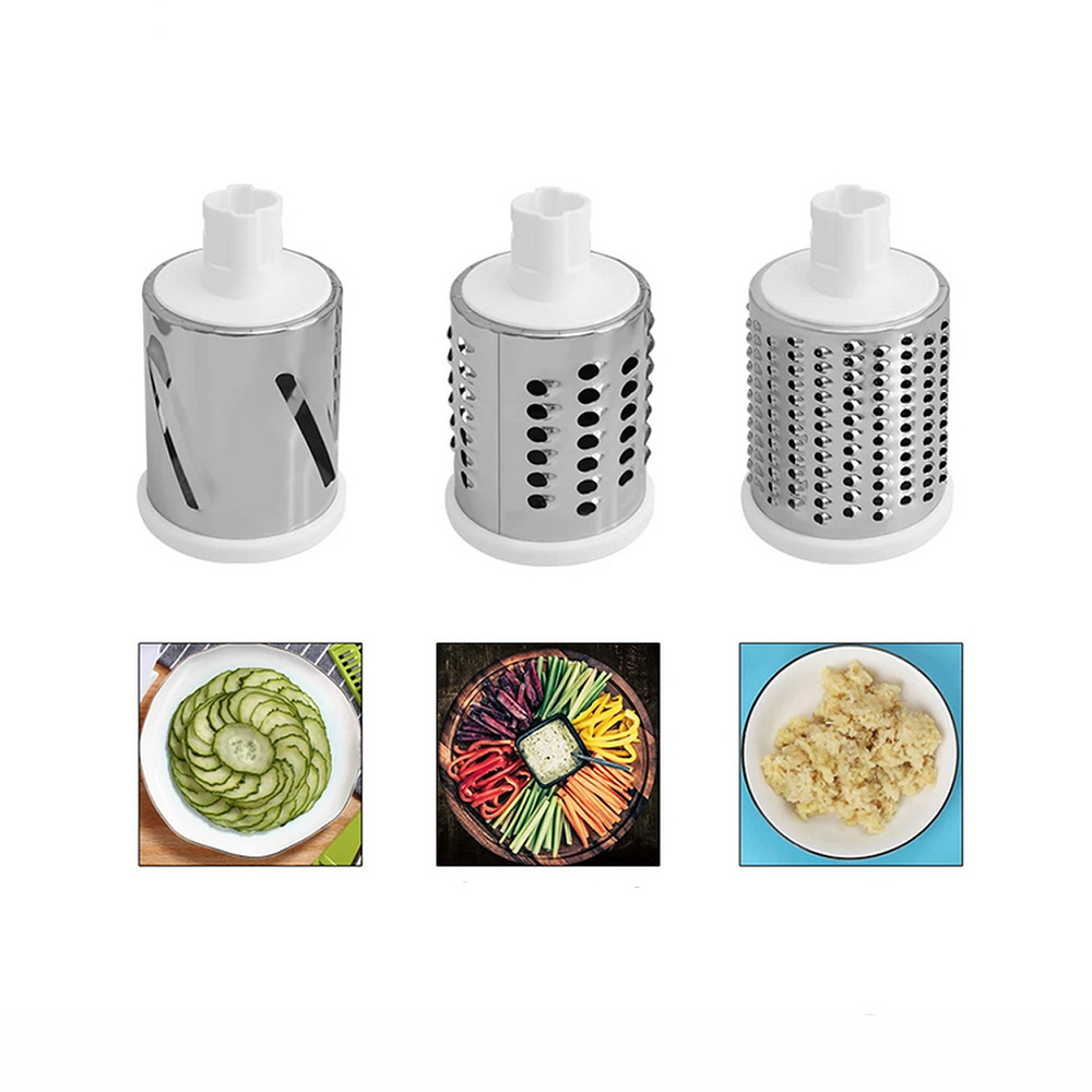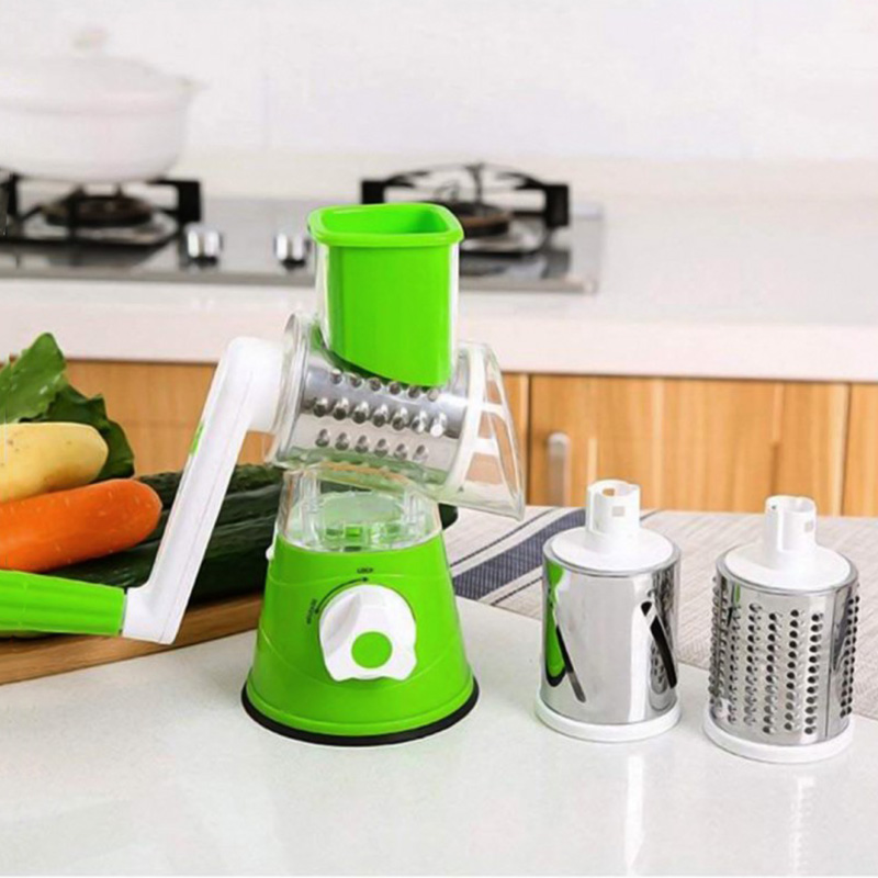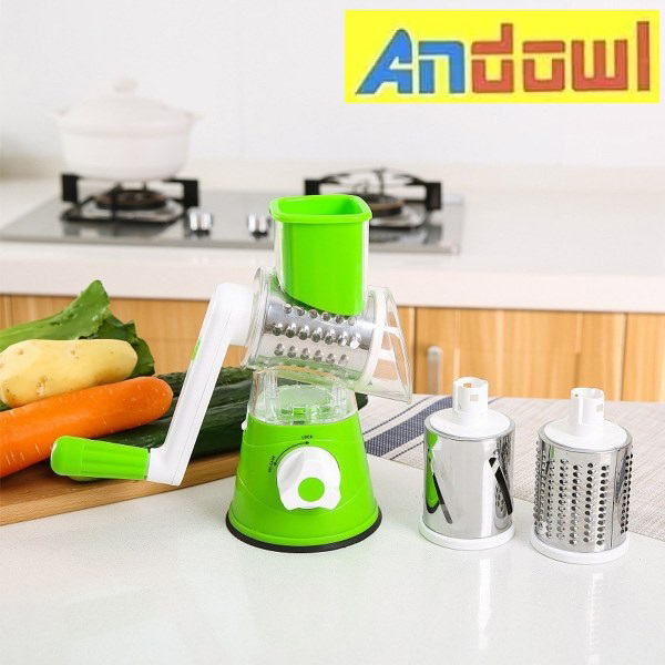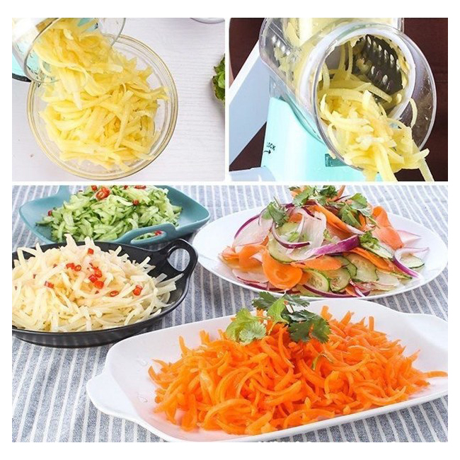 cu 3 lame rotative din inox, pentru legume si fructe este un accesoriu manual,