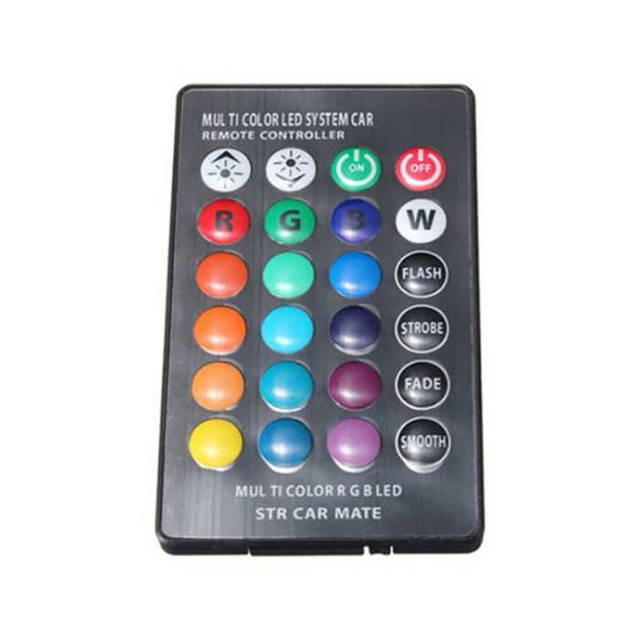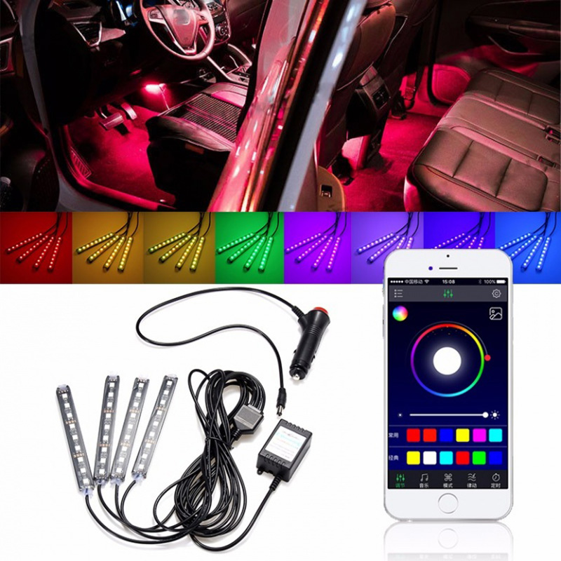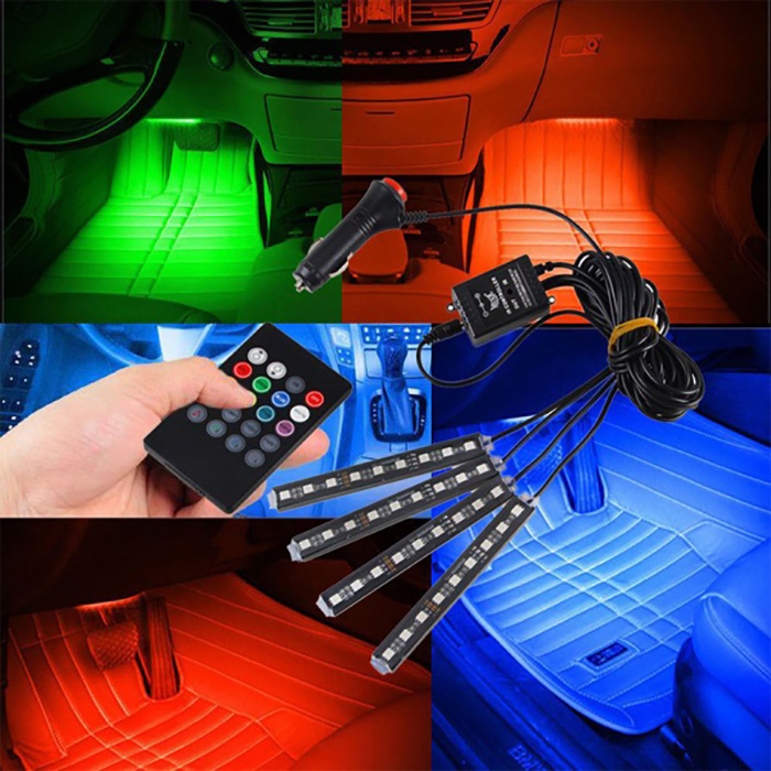 Sistemul de iluminare ambientala este format din 4 benzi din PVC cu LED-uri SMD foarte puternice, cu activare sonora si telecomanda. Sistemul detine un senzor de sunet care, in momentul activarii va aprinde luminile in ritmul muzicii. Culorile sunt schimbabile din telecomanda sau din aplicatia instalata pe telefon, astfel, puteti seta o singura culoare sau o trecere automata cu efect de schimbare a culorii.