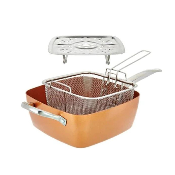 Aceasta detine un interior realizat din cupru, reprezentand o optiune durabila si rezistenta pentru bucataria dumneavoastra.